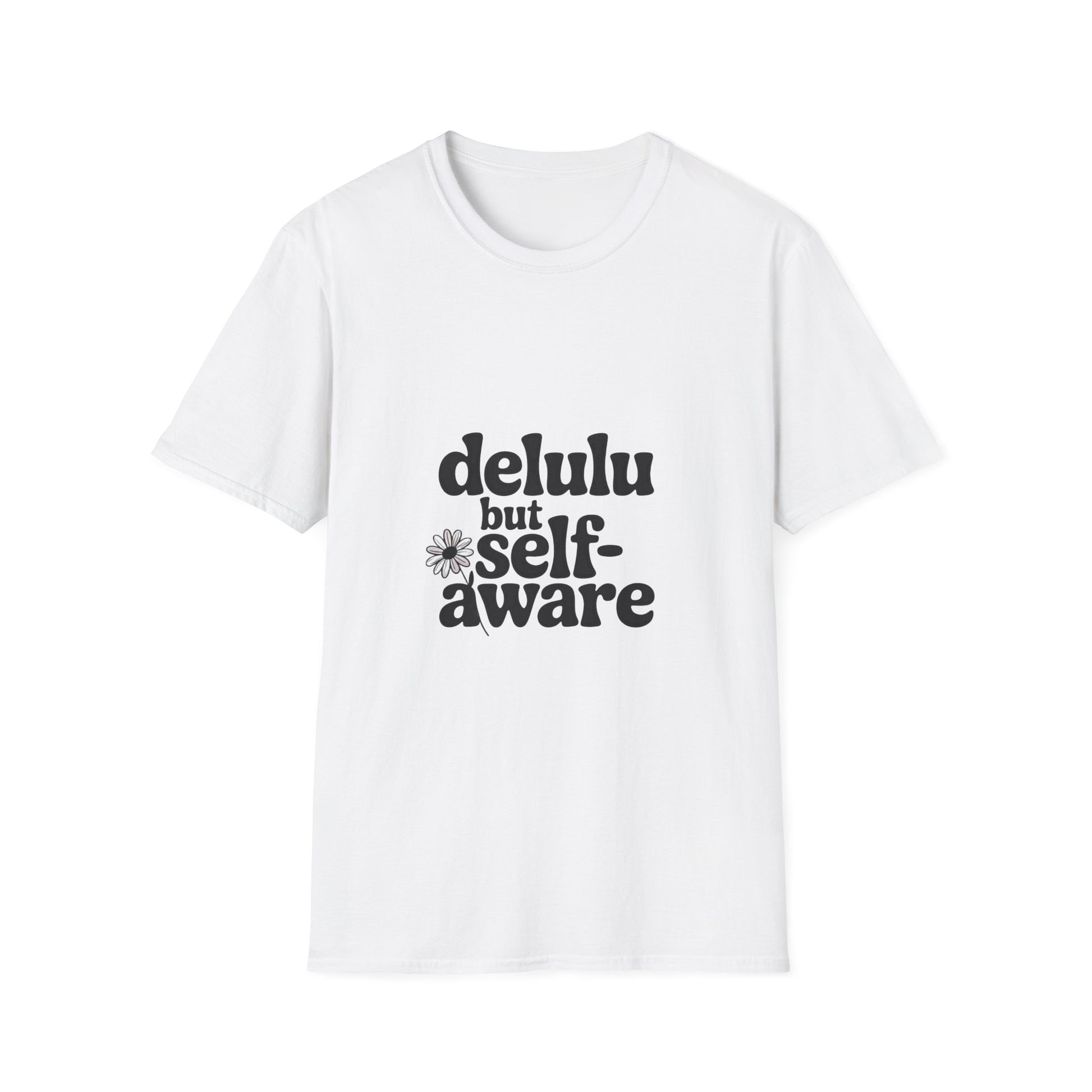 Delulu But Self-Aware Women’s T-Shirt – Funny Empowering Girl Power Graphic Tee